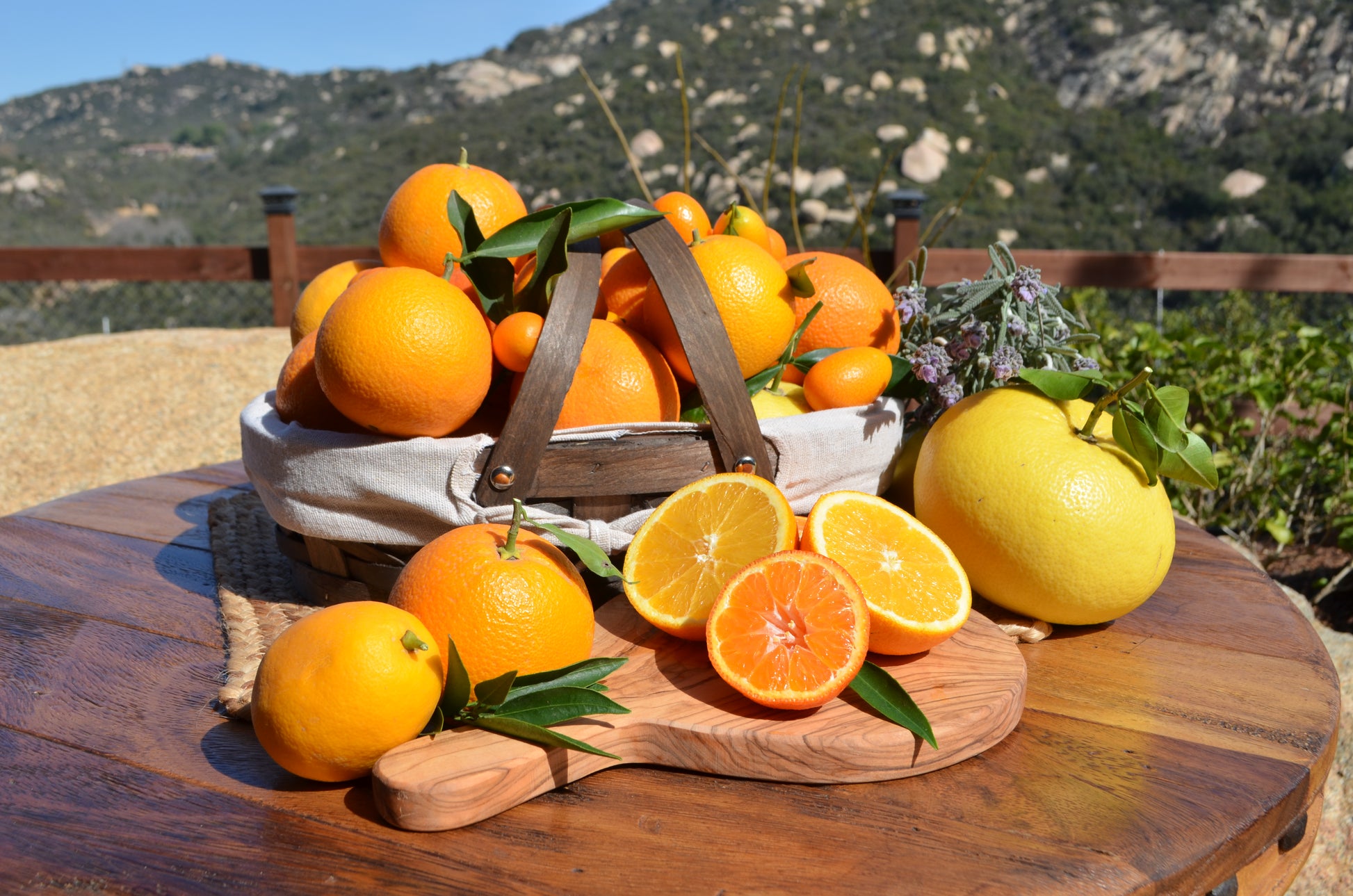 Fresh from the farm, a mix of organic citrus; navel oranges, meyer lemons, limes, tangerines, grapefruit, and kumquats.